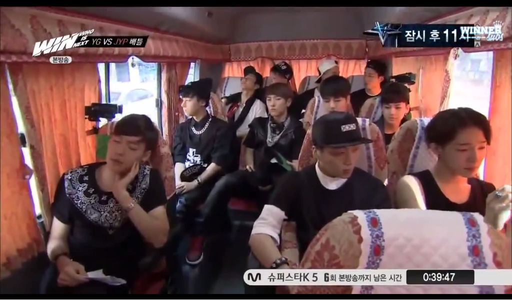 On the way to JYP. They get to the room and Team JYP is clearly a little more excited about this competition.