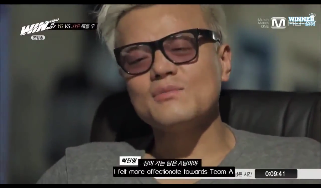 When YG asked JYP who he liked more, he said that he felt more affectionate towards Team A. But if he wanted a group to invest in now, Team B would be his choice.