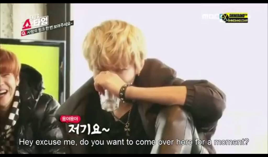 Kris has been blessed by the variety gods. Not only is he extremely good looking, he’s really funny. What’s great about his humor is that it’s the accidental kind. He tries so hard to be the cold, chic man but the show wouldn’t let him. And thank goodness they didn’t. He’s a variety show gem. From the hilarious orange juice wink relay to eating chicken to the very beginning where he finished their wave perfectly, Kris showed a totally different side of him. Now, he’s starting to completely ruin my bias list. Thanks.