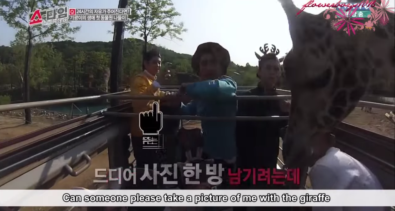 He wanted a selca so bad with the giraffes. It was either his hyungs were too scared or occupied, or the giraffes didn’t get near him at all. Awww, poor baby.