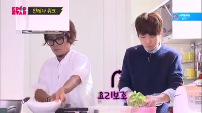 It’s Antenna Week and Yoo Hee Yeol decides to do something completely different than the other judges. He invites himself over to their dorm and brings a “French” chef to cook for them. Once I heard the word French, I instantly knew that it was Jung Jae Hyung. I was right. He cooks a cream pasta for them and sous chef Jung Seung Hwan assists him by making a salad, which YHY claims is a bit salty, lol. All I have to say is that I love a man who can make me some food.